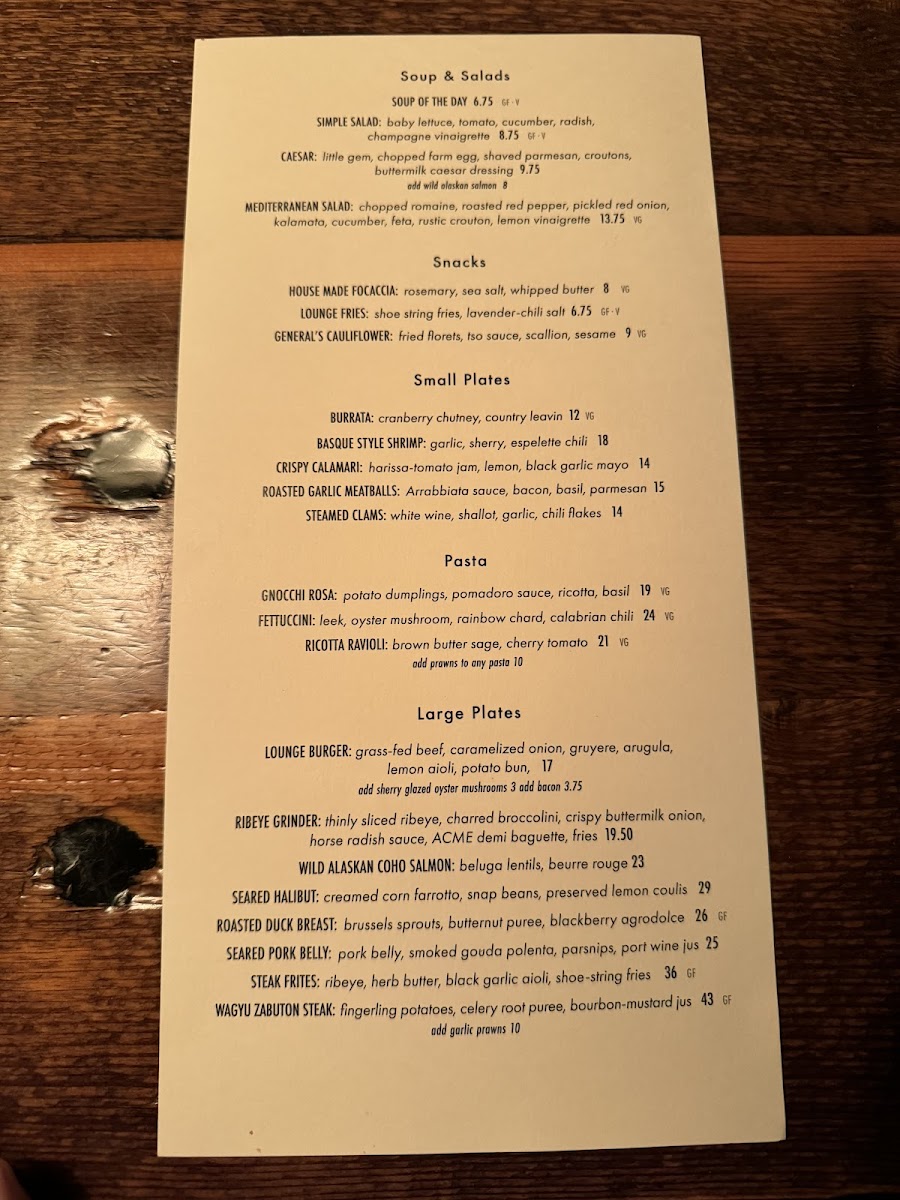 For heartier appetites, dive into the Lounge Burger, featuring house-ground grass-fed beef topped with savory bacon jam and gruyere. Each dish, from crispy calamari to indulgent fried chicken sandwiches, is crafted with fresh ingredients that respect both flavor and presentation. Don’t forget to save room for dessert; the vanilla bean crème brûlée is a must-try!
